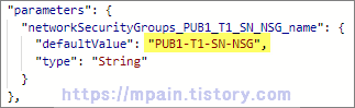 networkSecurityGroups_PUB1_T1_SN_NSG_name 의 defaultValue (PUB1-T1-SN-NSG -> koreasouth-nsg)