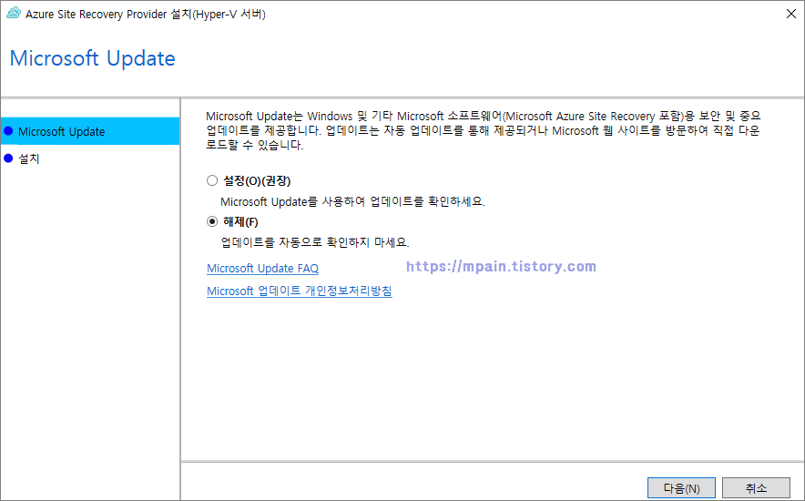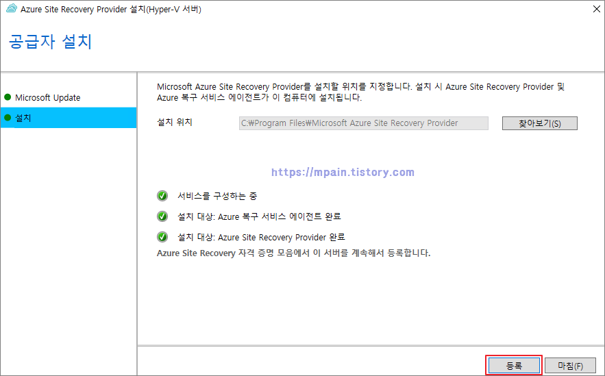 Azure Migrate: Server Migration Tool을 사용하여 Hyper-V의 VM을 마이그레이션하기 위해서는 Microsoft Azure Site Recovery Provider를 Hyper-V 호스트(혹은 클러스터 노드)에 설치해야 합니다. Microsoft Azure Site Recovery Provider를 다운로드, 설치 및 Azure Migrate에 등록하는 절차는 아래와 같습니다.