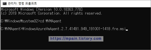 VM에서 cmd를 관리자 권한으로 실행 후, 다운로드 받은 설치 파일을 실행합니다.