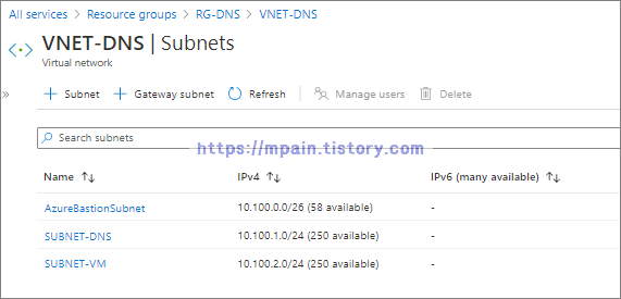 5. Virtual network의 Custom DNS 설정