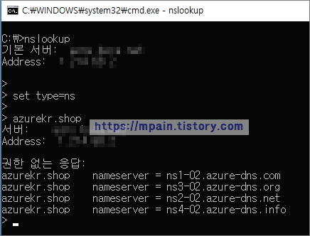 이렇게 가비아에서 네임 서버를 Azure DNS Zone의 Name server로 변경했다고 해서 바로 반영되는 것은 아닙니다. 네임 서버 변경에는 최대 48시간이 걸립니다. 실제로 제가 테스트했을 때는 변경 당일에는 반영이 안됐고, 다음날 확인했을 때는 반영되어 있었습니다.