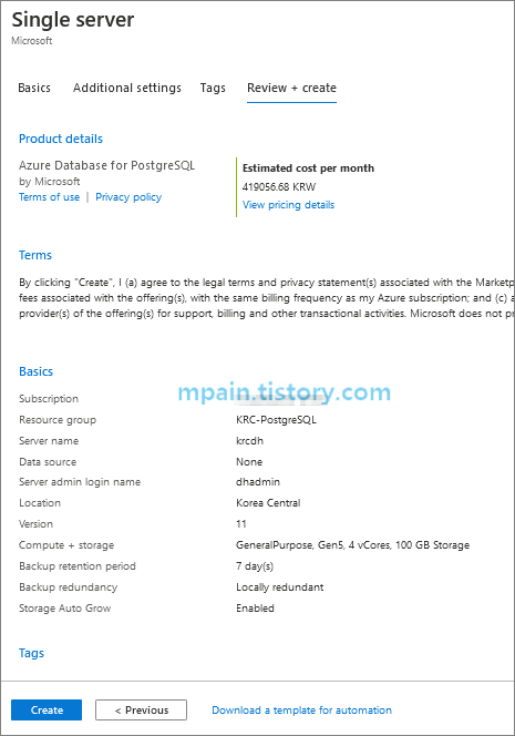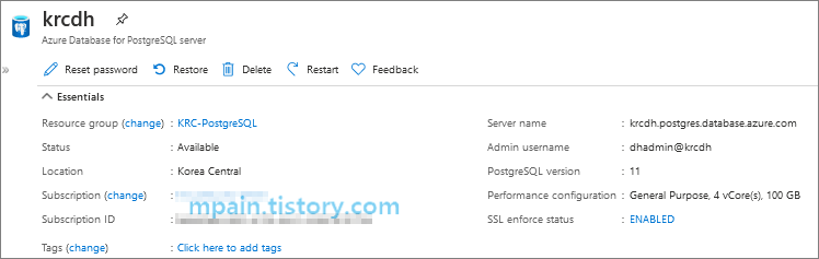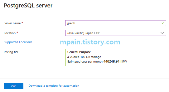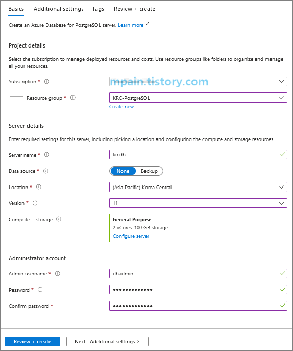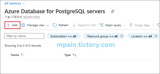 Azure 포털 - Azure Database for PostgreSQL - +Add