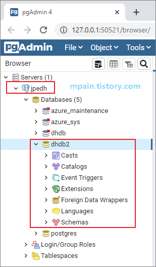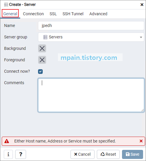 - Name 에 PostgreSQL 이름을 입력합니다. (jpedh)