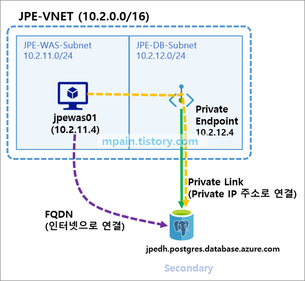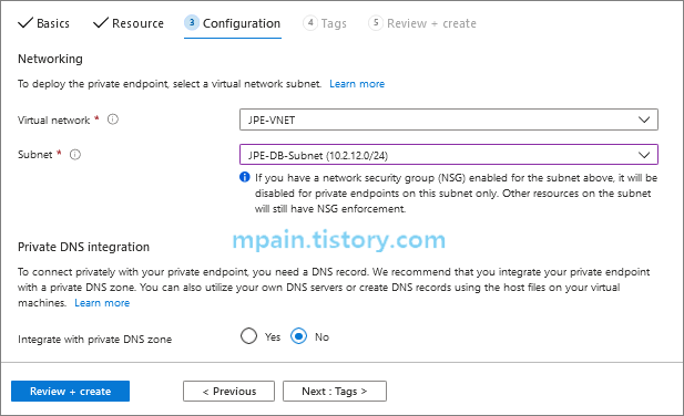 - Subnet : JPE-DB-Subnet (Private Endpoint용 NIC가 생성될 Subnet)