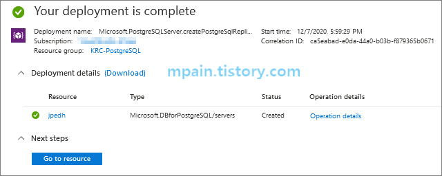 Azure Database for PostgreSQL 배포 (Primary DB)