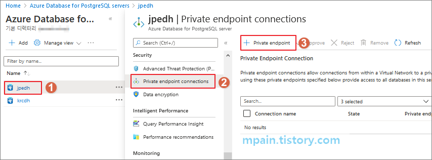 대상 PostgreSQL(jpedh) - Private endpoint connections - +Private endpoint