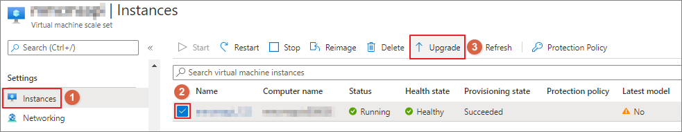 위 명령을 실행하고 난 후, VMSS에서 인스턴스를 업그레이드(Upgrade) 해야 실제로 반영됩니다.