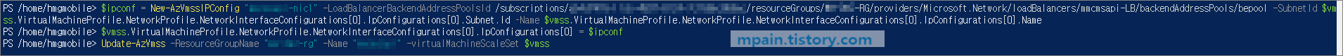 아래는 Cloud shell에서 VMSS의 Applicaton Gateway를 Load Balancer로 변경하는 화면 캡처입니다.