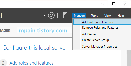 Server Manager - Manage - Add Roles and Features