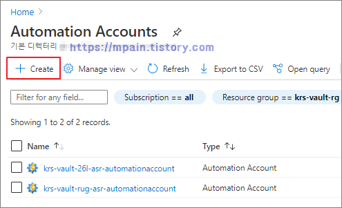 Automation Account 생성 완료