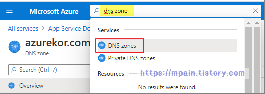 Azure 포털 검색란에서 DNS zone을 검색해서 선택합니다.