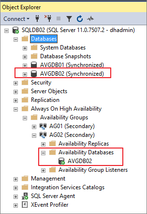 Secondary에서 Database가 Synchronized로 표시되고, Availability Database 에서도 경고 표시가 사라졌습니다.