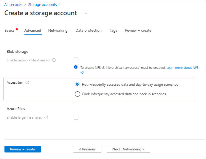 Strorage account를 생성 할 때에는 기본 Tier로 Hot 또는 Cool 만 지정할 수 있으며 Archive Tier는 지정할 수 없습니다.