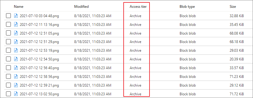 - Azure 포털에서 개별 blob을 선택하여 Archive Tier로 이동