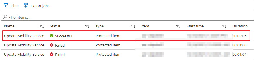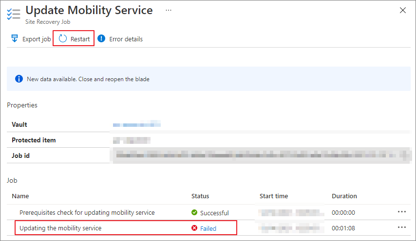 가장 최근의 Update Mobility Service가 Failed인 job을 선택합니다.