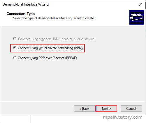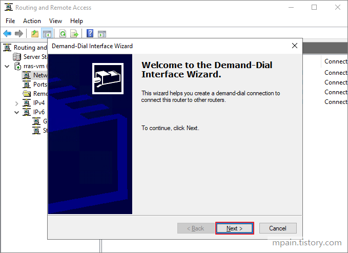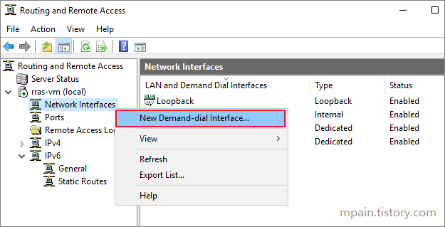 Network Interfaces 오른쪽 버튼 클릭 - 'New Demand-dial Interface' 클릭