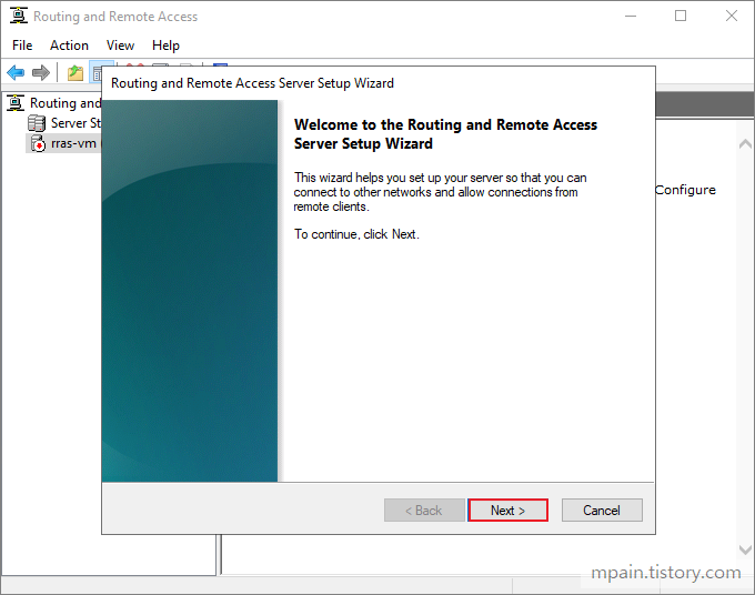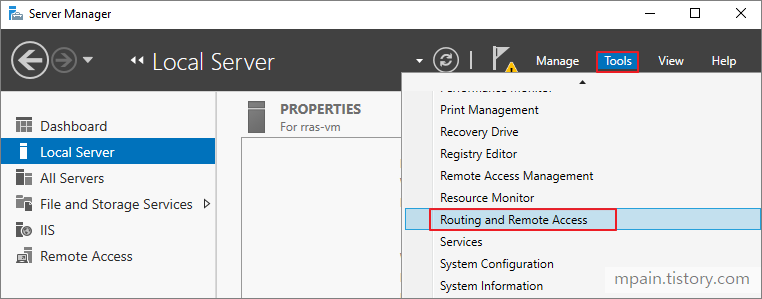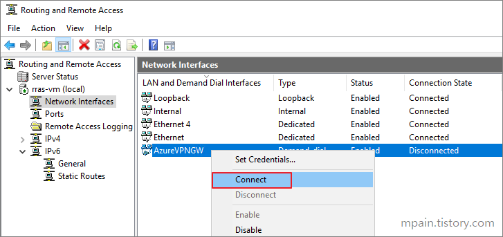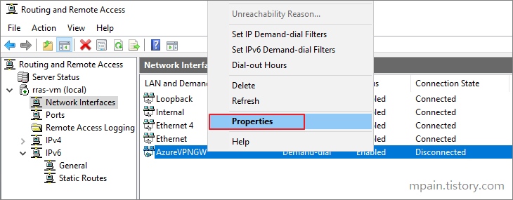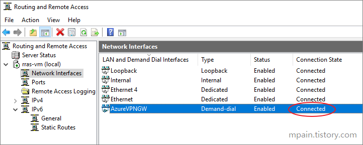 RRAS 역할이 설치된 후 Azure VPN Gateway와 연결하기 위해 RRAS를 구성합니다.