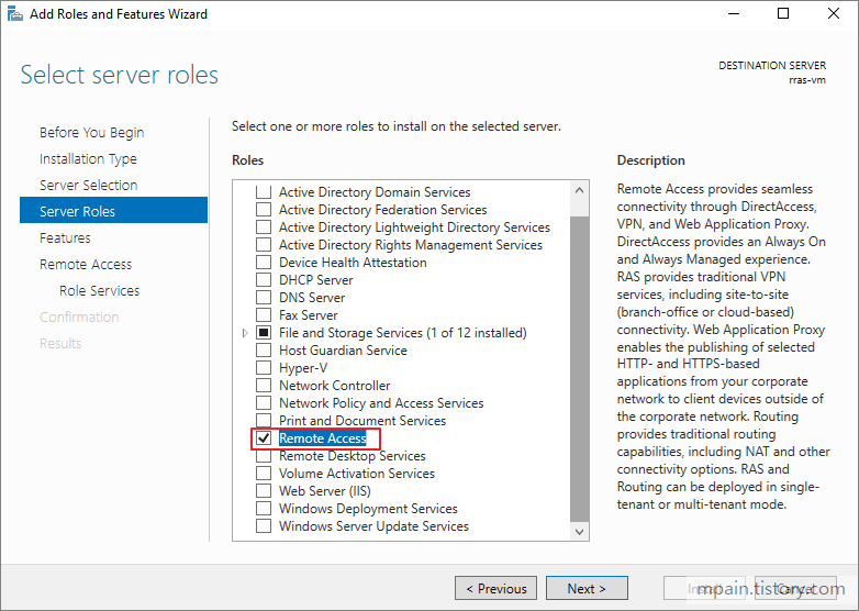 Server Roles에서 Remote Access를 선택합니다.