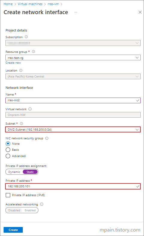 두 번째 NIC는 DMZ-Subnet에 연결합니다.