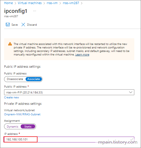 VM이 중지되면 IP 주소를 테스트 구성도처럼 지정합니다.
