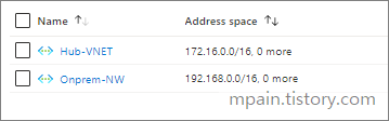 - Address prefix는 Azure IP 대역을 지정하고 (172.16.0.0/16),