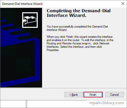 Completing the Demand-Dial Interface Wizard