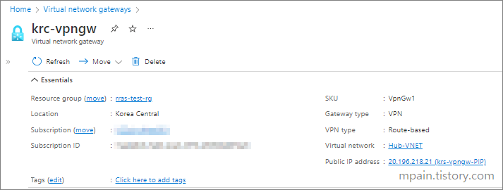 VPN Gateway가 생성되면 Public IP address를 확인합니다.