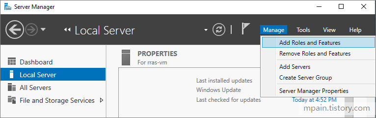Windows Server의 RRAS (Routing and Remote Access Service) 기능을 사용하여 Azure Virtual Network와 S2S VPN을 연결하는 방법을 소개합니다.